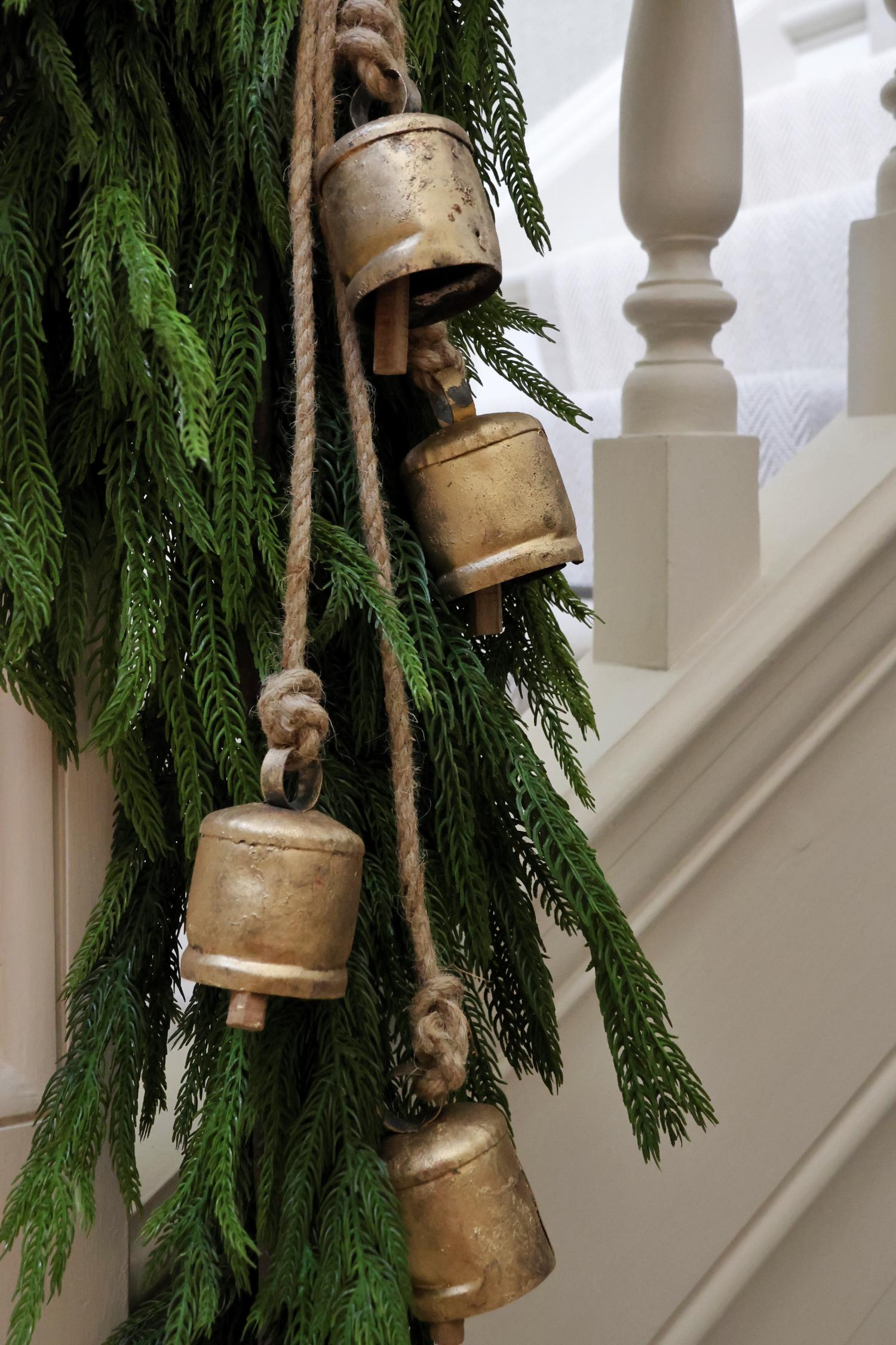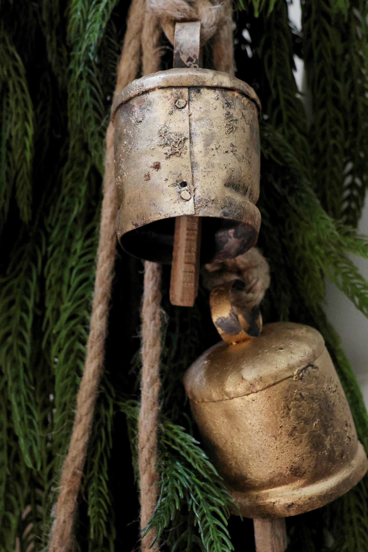 Beautiful traditional Indian cow bell garland on natural jute rope, ideal for festive decorating. This size is perfect for decorating our garlands.