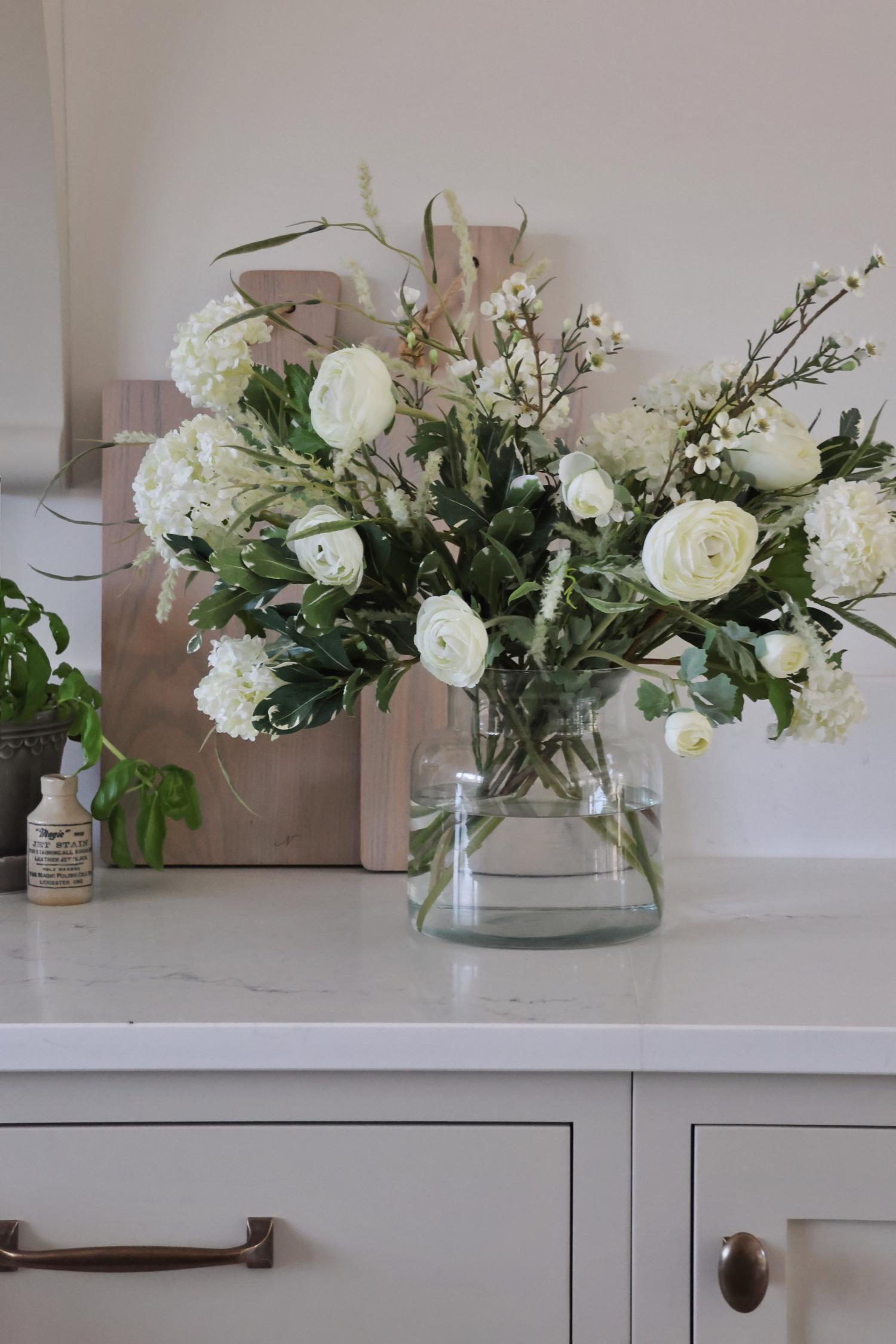 This faux Pittosporum stem is full and lush with cream tipped leaves helping to lift your arrangements, adding a Spring feel. I particularly love the foliage mixed in with a variety of our foliage and white stems such as the Ranunculus, Sweet Pea, Waxflower, and Lilac to name a few.