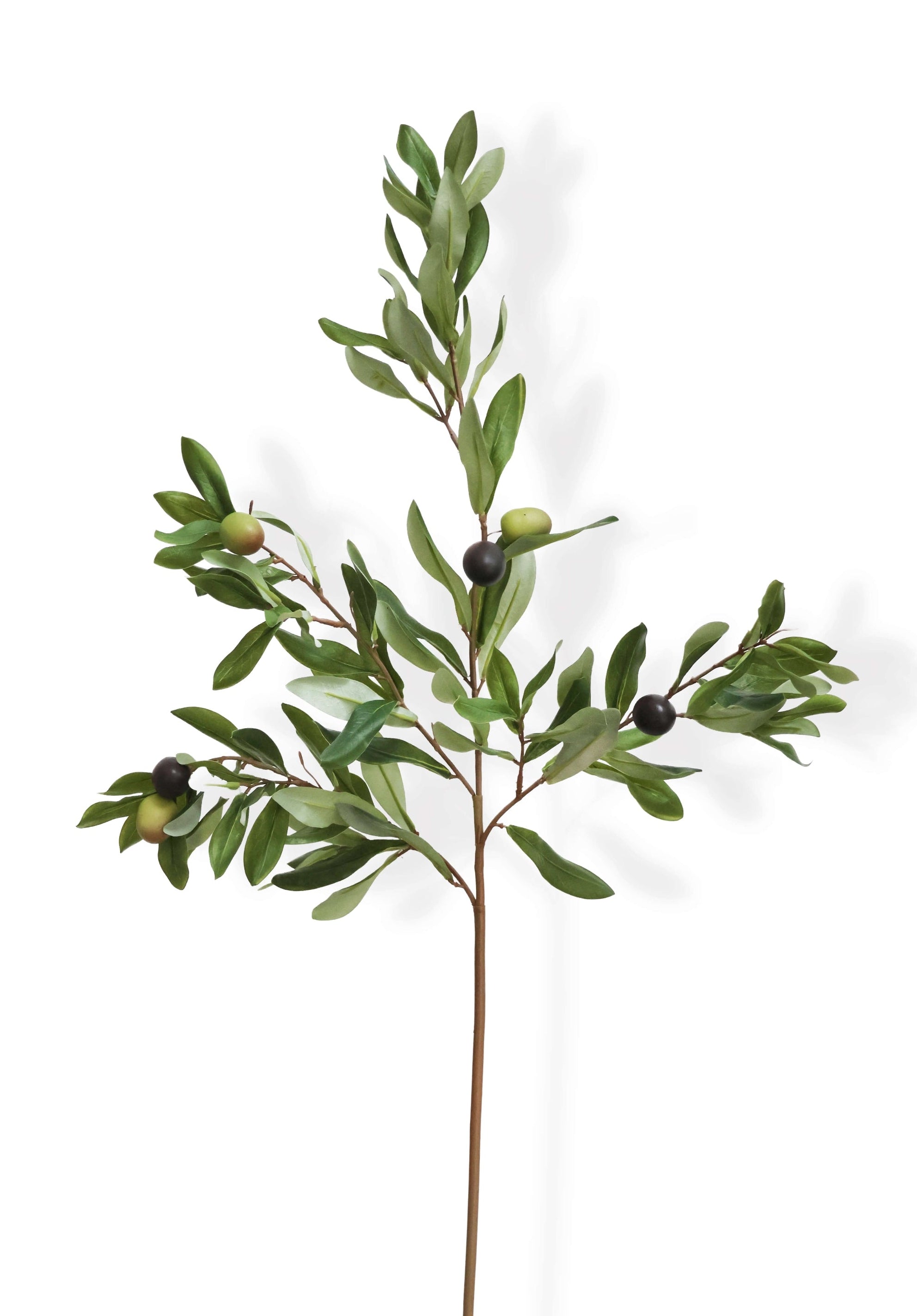 This incredibly life-like faux olive branch features an abundance of silvery green leaves and a scattering of fruit. Looks stunning styled en masse, or used with our classic green and white stems such as waxflower, plum blossom, populus, ranunculus and lilac. They bring the feeling of the Mediterranean indoors.