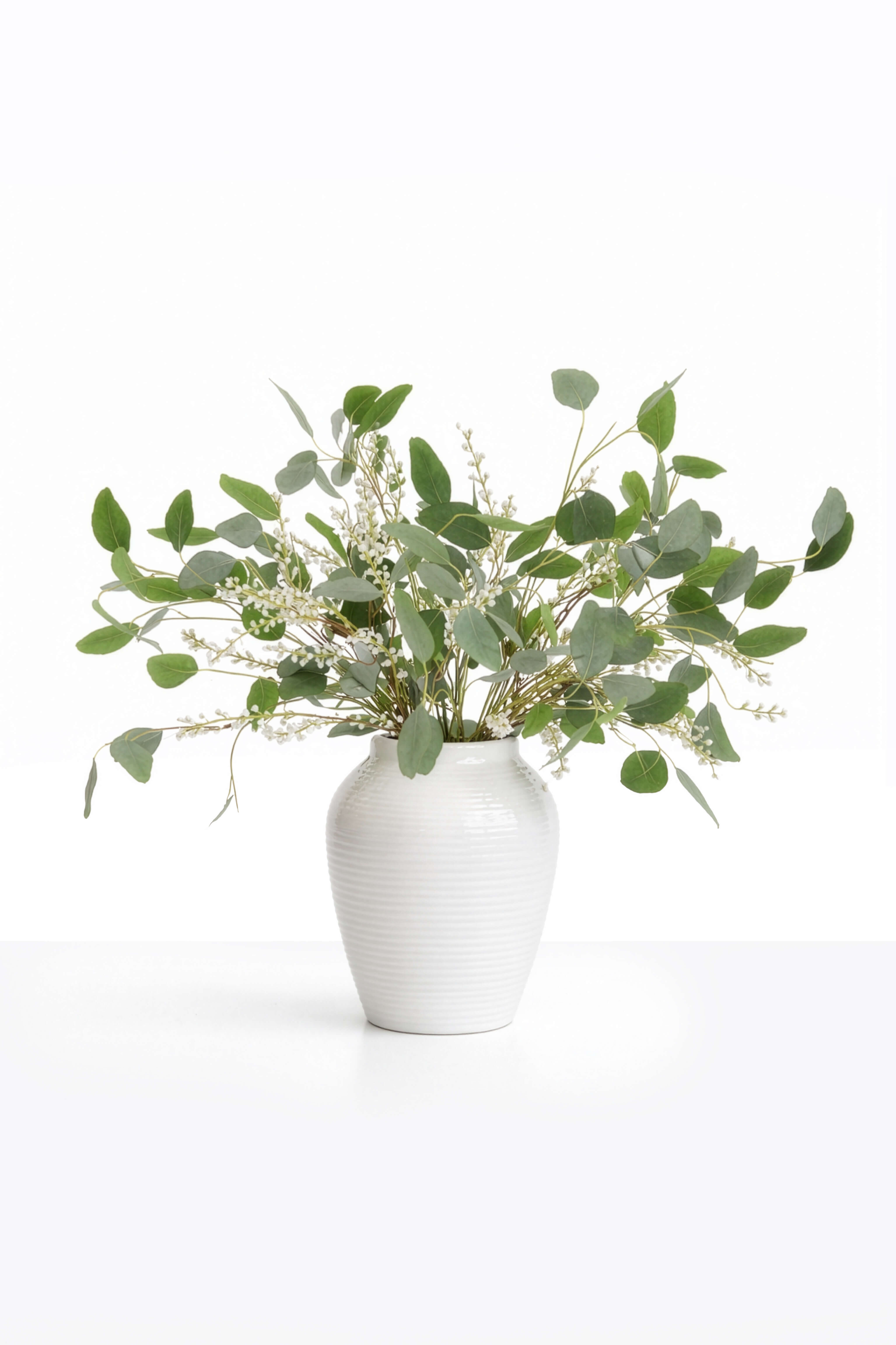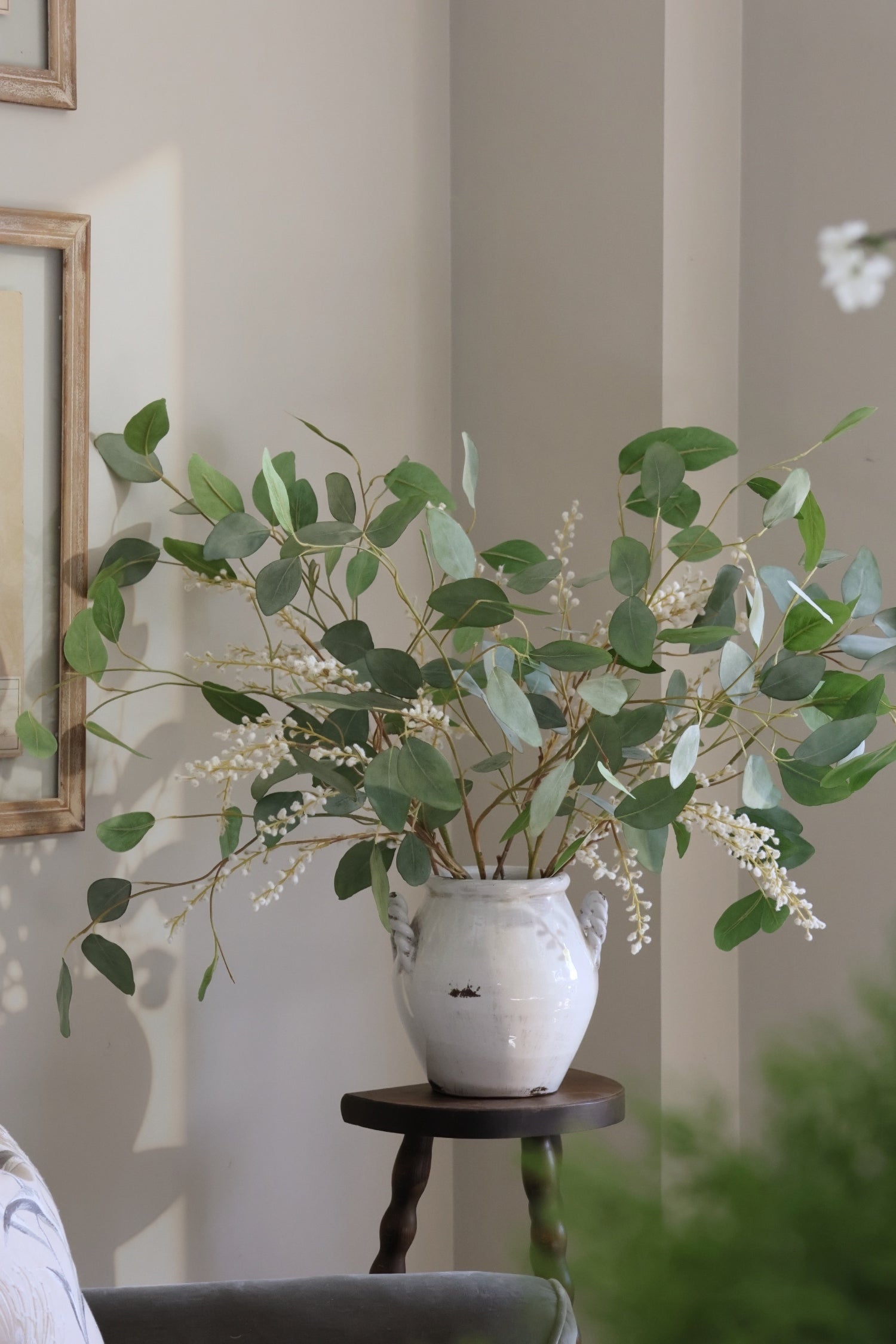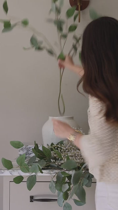 This arrangement is perfect for all seasons, featuring our Eucalyptus Populus adorned with muted grey/green leaves, paired with our elegant White Willow. A timeless combination that enhances any area of your home.