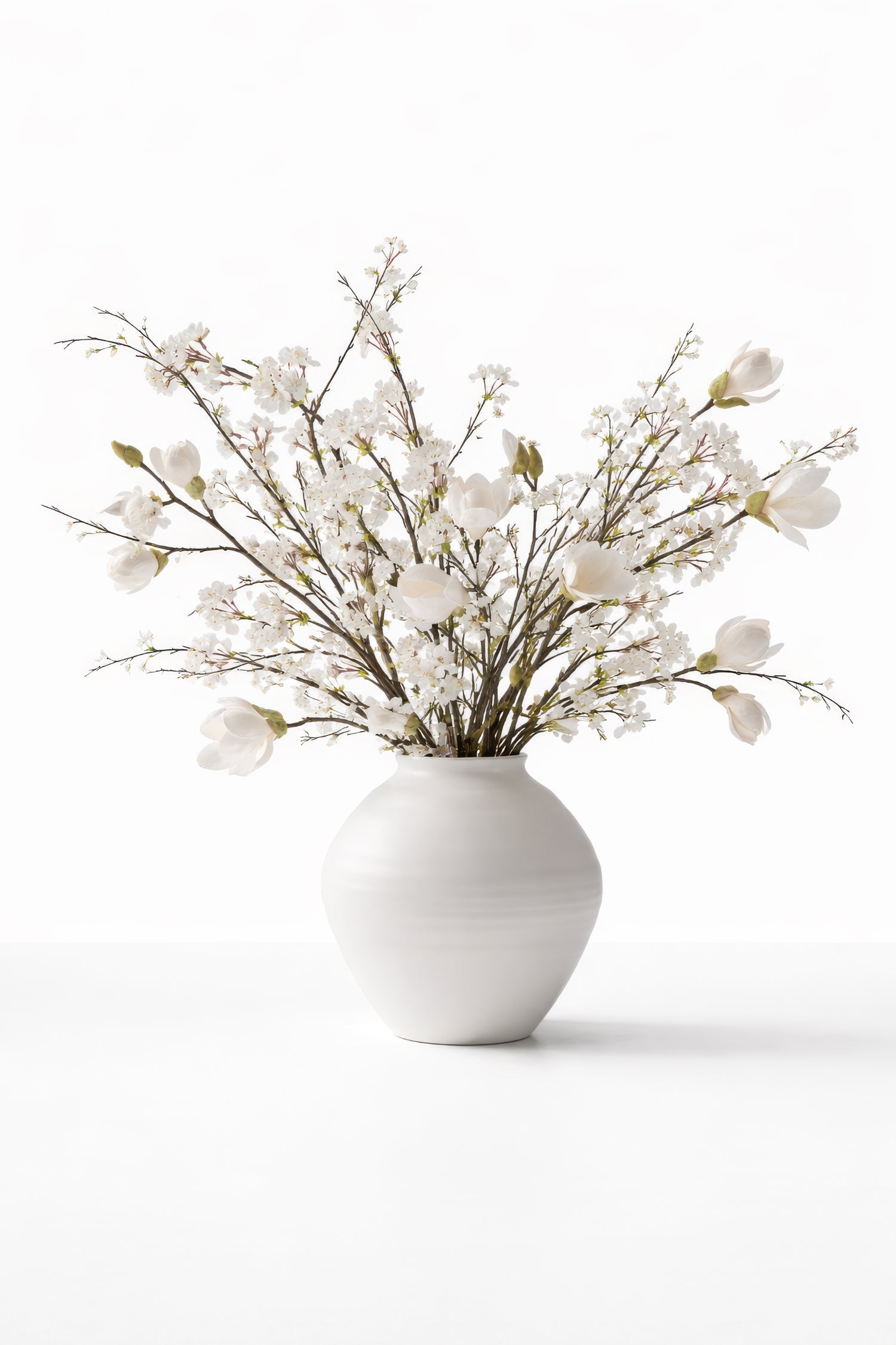 This faux arrangement is a beautiful reflection of Spring using budding Magnolia, and a combination of our delicate Sakura and Cherry blossom for a true celebration of the season.
