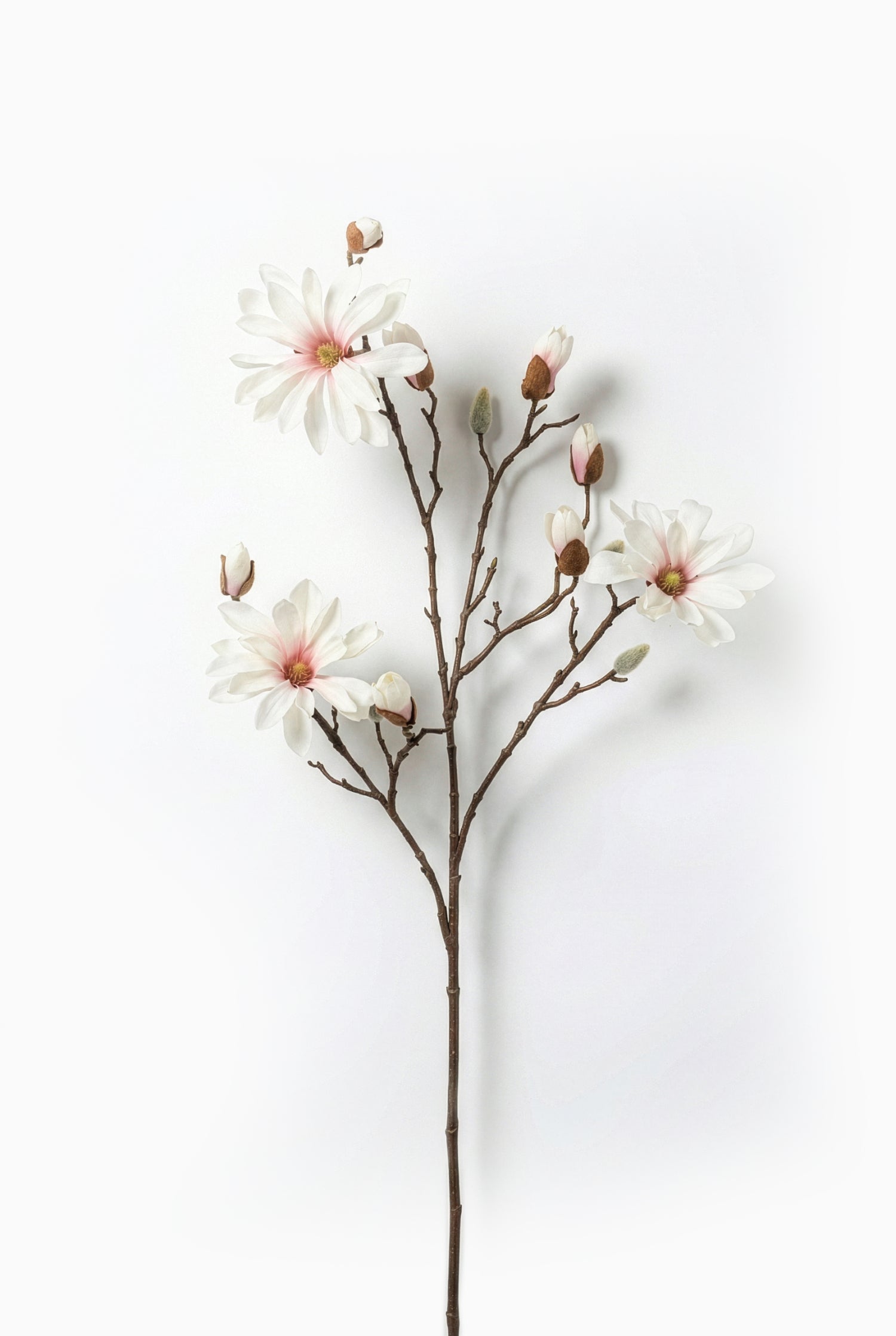 Our elegant blush Magnolia branches create an effortlessly beautiful arrangement styled on their own, or in amongst our blossom stems. Each bloom has soft pink and white petals, carefully hand-made to ensure that some buds are more open than others to reflect the nature of real Magnolia. But unlike the fleeting real branches, these are here to stay and be admired forever.
