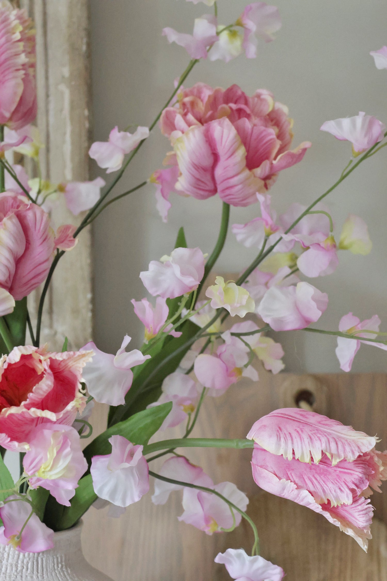 This elegant bundle pairs our textured Nayland vase with eight of our most-loved pink tulips and sweetpeas.