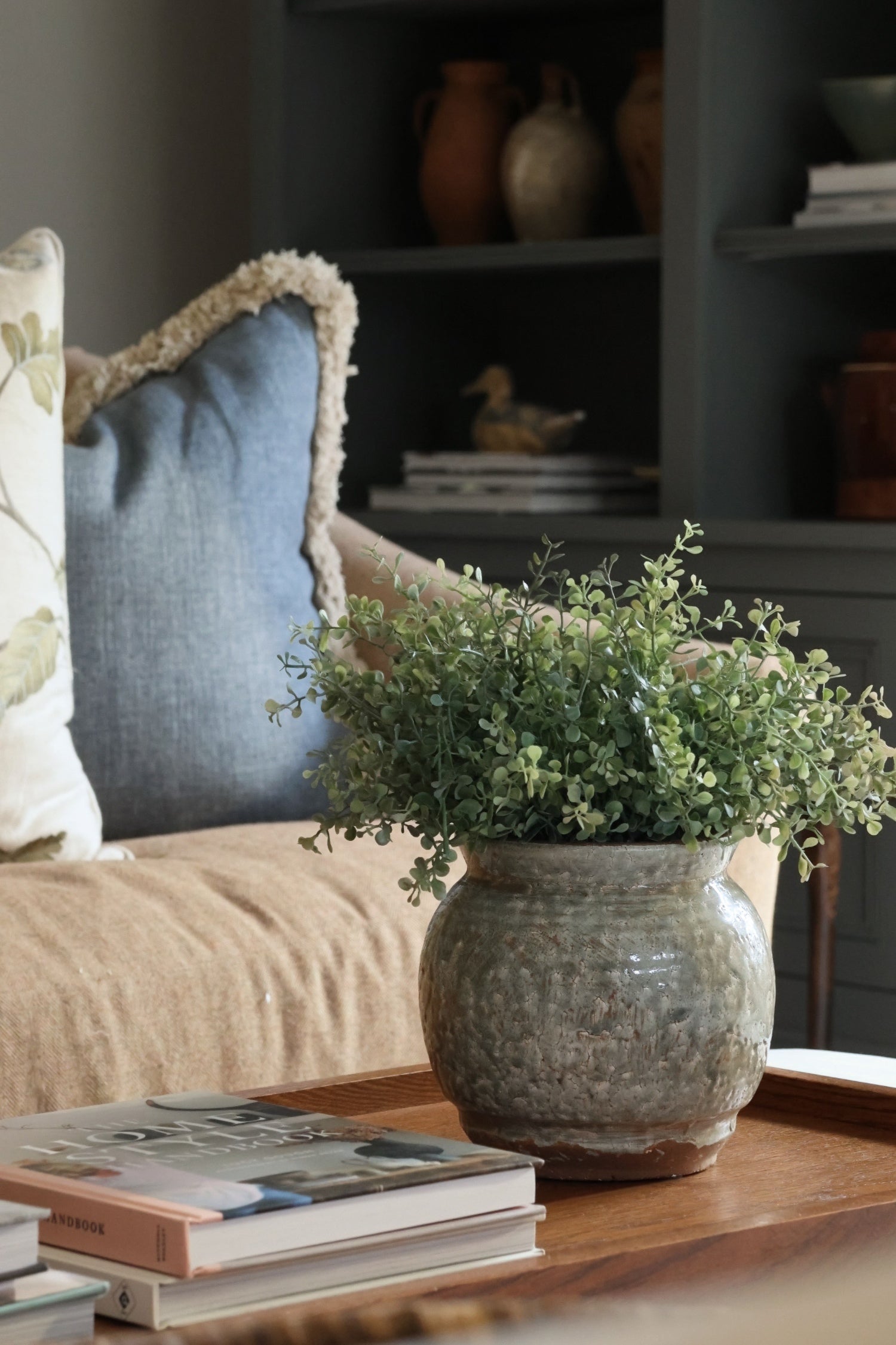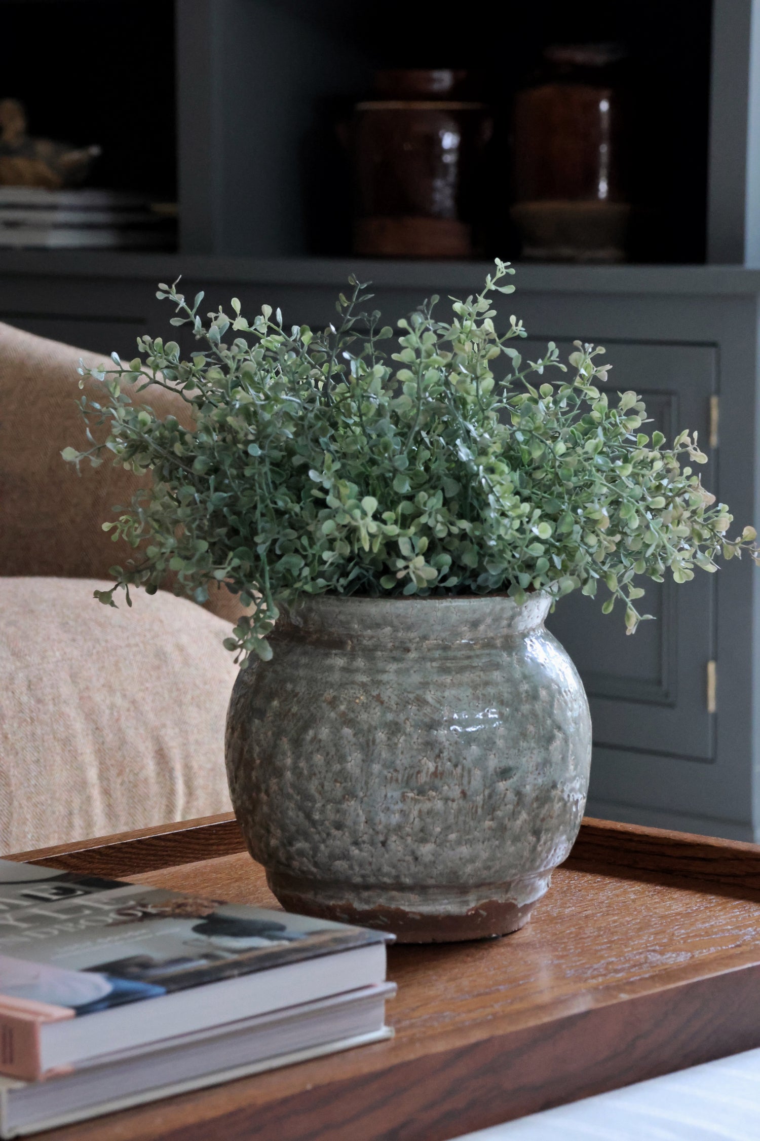 This timless bundle pairs our textured Henley pot with three of our Faux Green Eucalyptus Bush stems.
