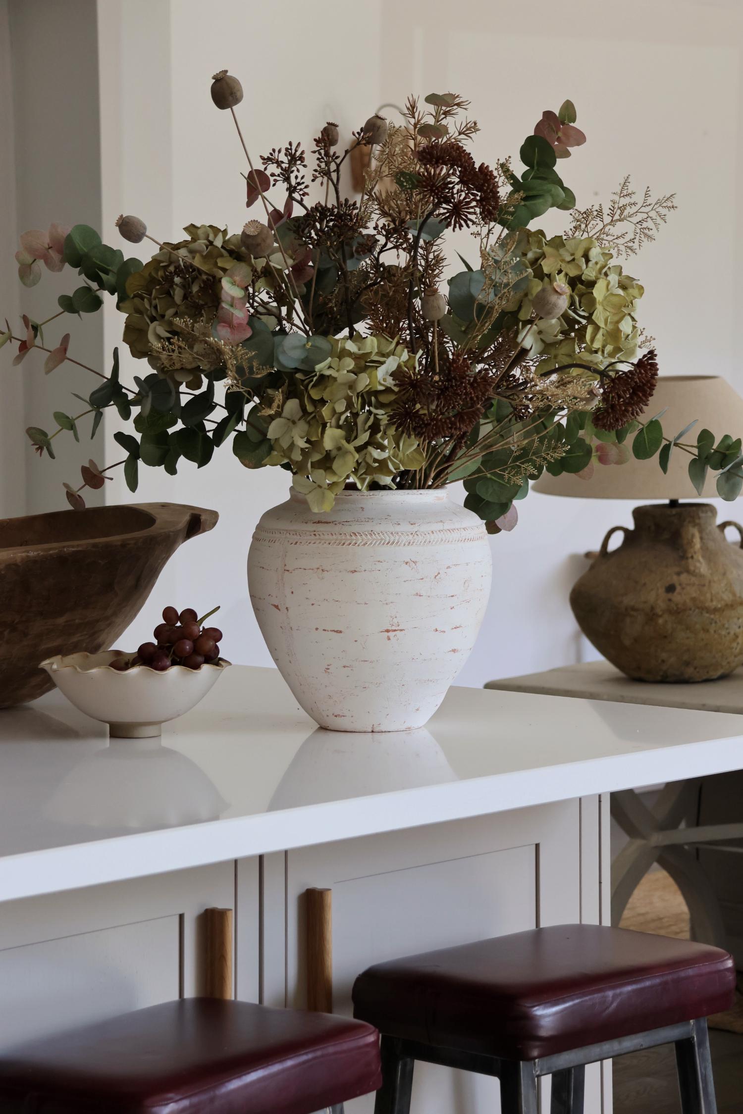The Constable pot features a charming rustic terracotta finish and intricate top detailing. Ideal for displaying an artificial tree, your favourite faux branches, or as a striking standalone statement piece.