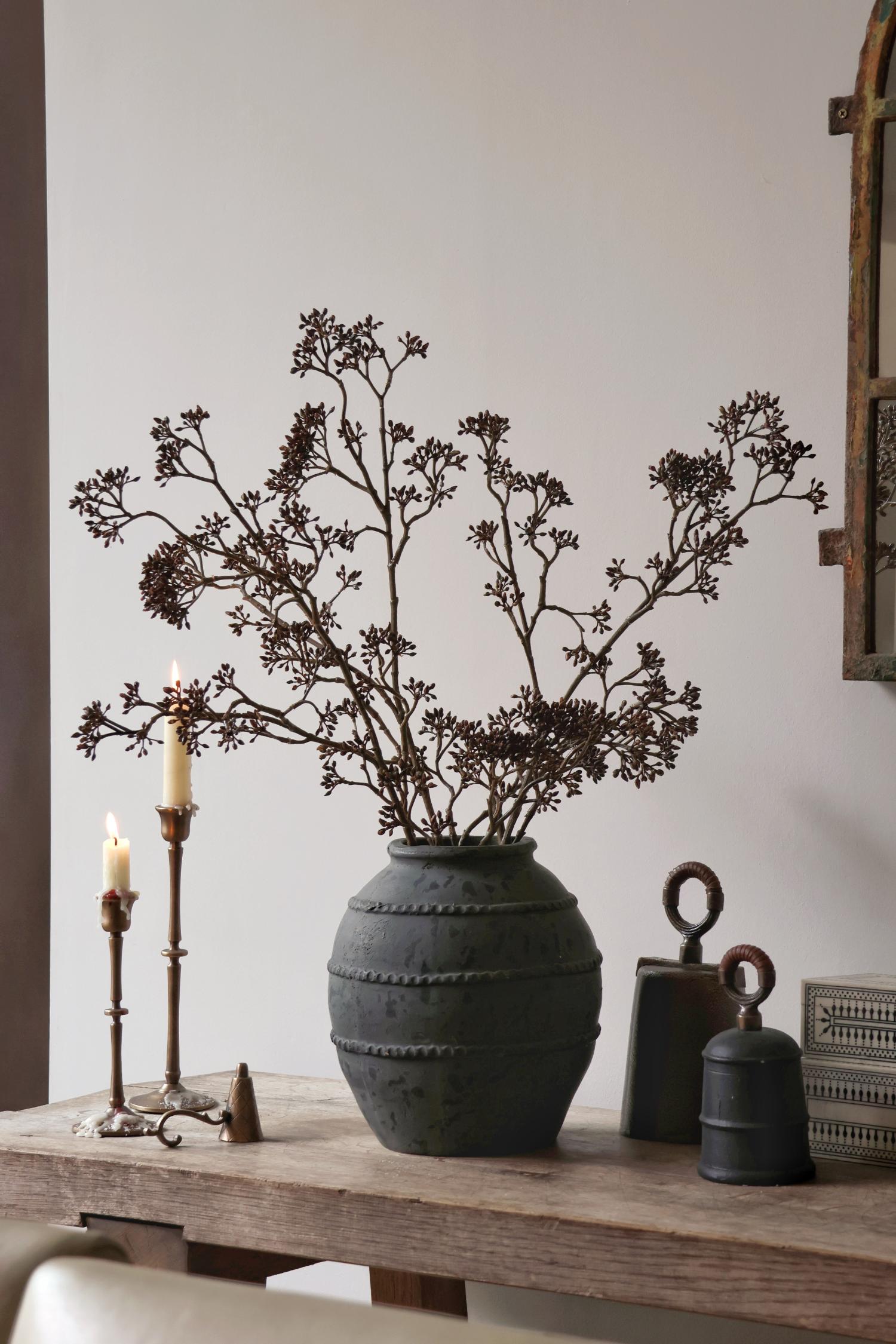The Faux Dried Seed Head Spray is a textured stem in deep brown shades, ideal for unifying an arrangement by adding depth and visual appeal. It also creates a striking, contemporary autumn display when used alone.